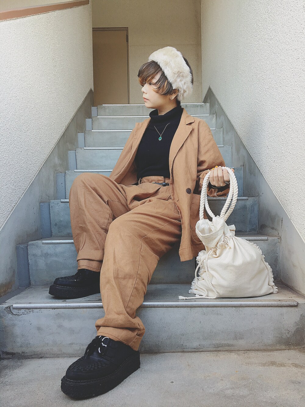 junnan🐈のヘアバンド「Cableami×BEAMS BOY / ファー ヘアバンド 16AW」を使ったコーディネート