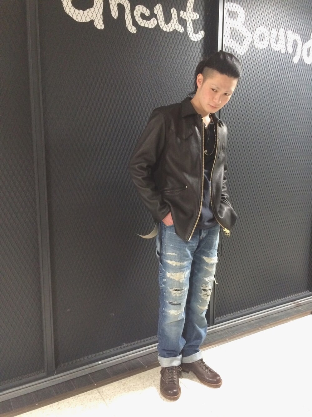 春らしい、天気もふえてきましたね!! 新作入荷してますよ!! 完全別注のフルカウントダメージデニムで合わせてみました。