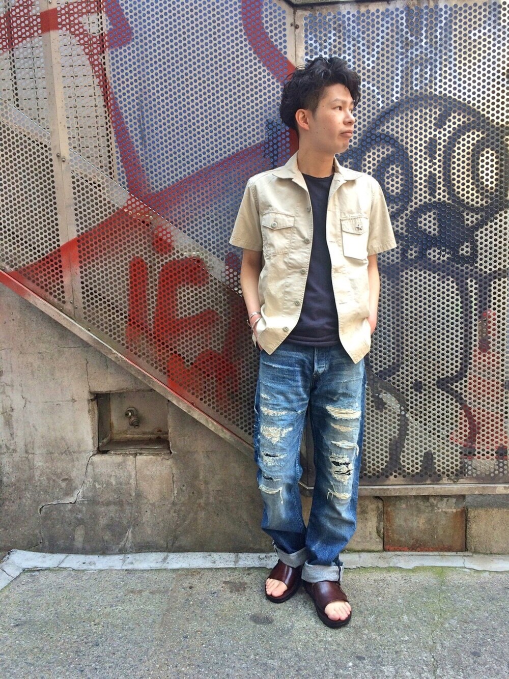 HIRATSUKAのTシャツ/カットソー「DSTREZZED(ディストレス) カットオフクルー」を使ったコーディネート