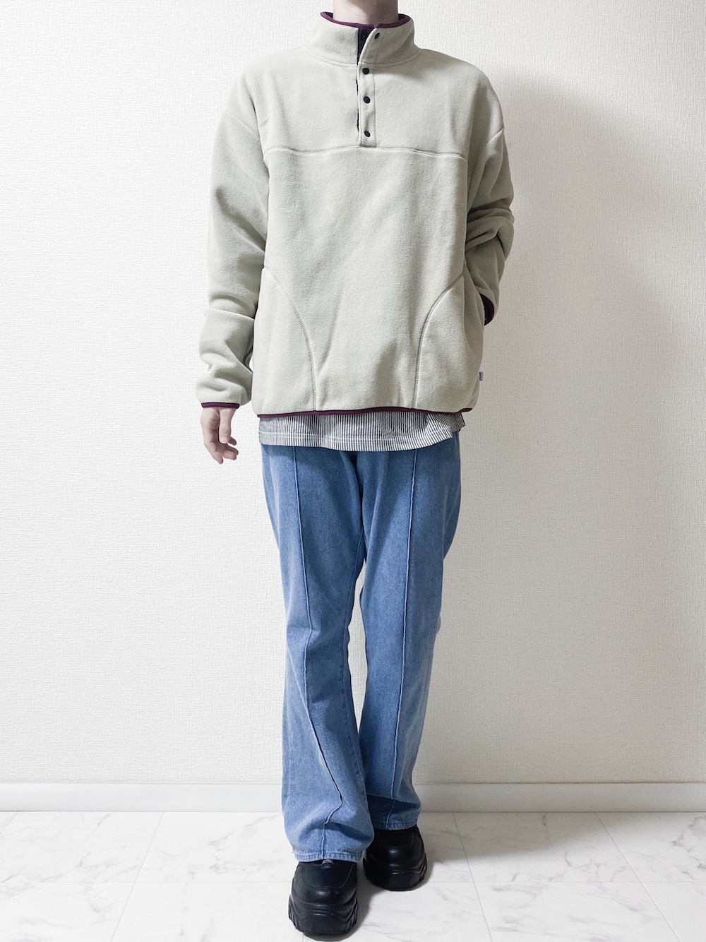 ▪️Instagram ⇨ @jun0604ps @j_ps64wear _ _ _ _ _ _ _ _ [ style ] _ _ _ _ _ _ _ _ _ フリース×デニム👕 大人っぽく秋にもぴったりなフリースのカラーとシルエットが可愛いしオススメ🙆♂️✨ ストライプシャツとレイヤードさせると少し小洒落た感も出せるので◎ 落ち着いたベージュ系の色味も秋冬っぽいから 好きだな〜🌈 _ _ _ _ _ _ _ [ contact ] _ _ _ _ _ _ _ _ ✍️ お仕事のご依頼等はプロフィールのInstagramよりお手数ですがメッセージを頂けると幸いです🍃 _ _ _ _ _ _ _ _ _ _ _ _ _ _ _ _ _ _ _ _ _ 🕊