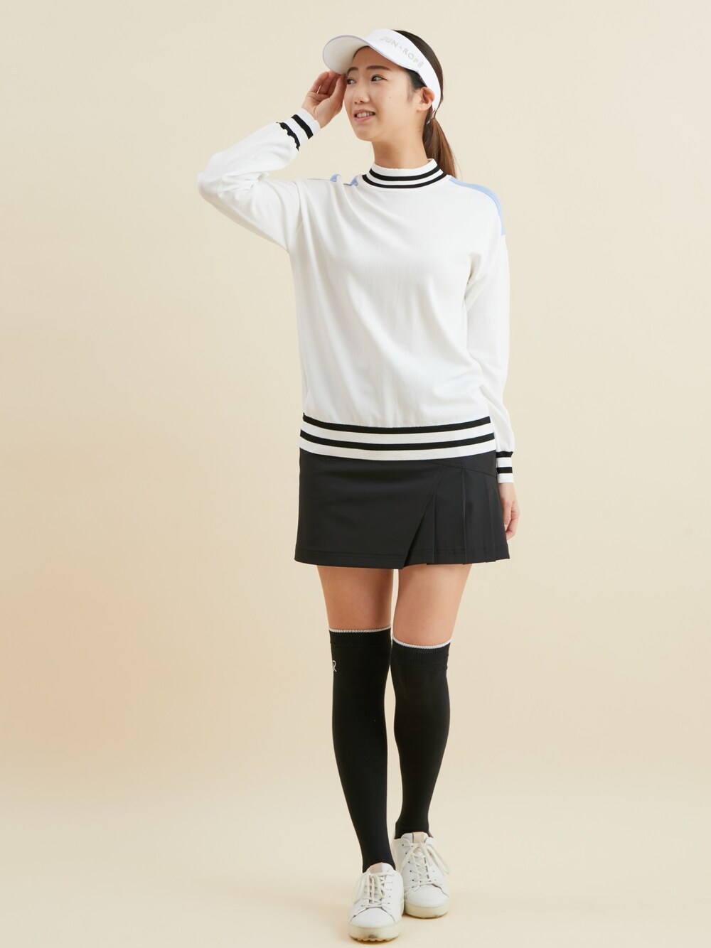 shinomigolfのニット/セーター「バックラインライン配色パフスリーブ長袖プルオーバー」を使ったコーディネート