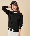 shinomigolfのニット/セーター「バックラインライン配色パフスリーブ長袖プルオーバー」を使ったコーディネート