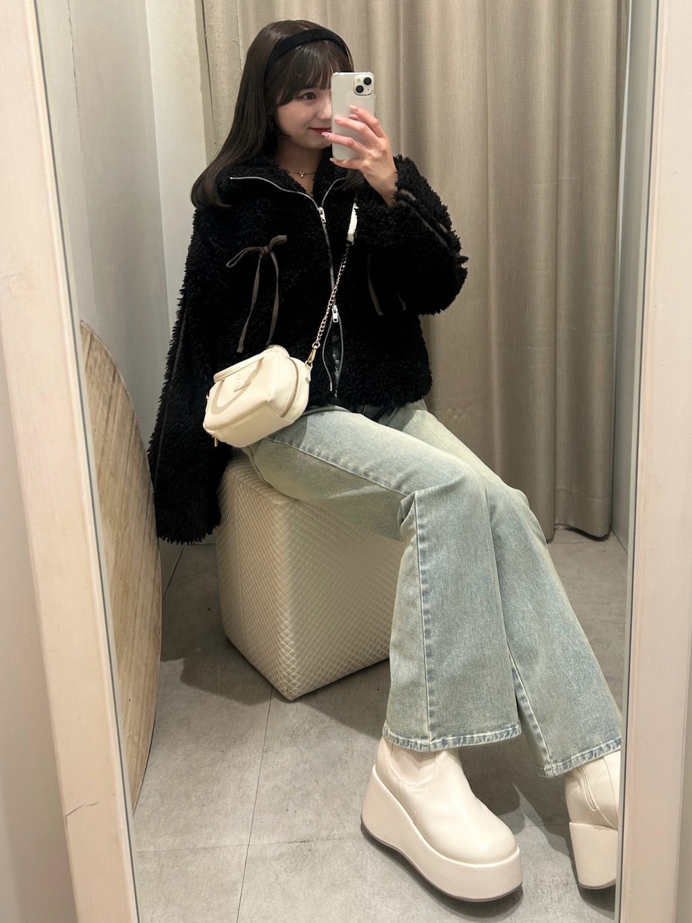 jun(one after another NICE CLAUP)のブルゾン「ボアリボンショートジャケット」を使ったコーディネート