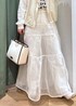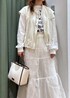 白で統一したコーデにしました。 ロゴTとデニムにベストだとカジュアルすぎるので、ラメのチュールスカートをレイヤードしました。 色悩みする重ね着は色をまとめることで、解決するのでおすすめです。