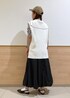 ボーダーのカットソーにベストをレイヤードしたスカートスタイル。 腰回りをカバーできる着丈で、楽におしゃれを楽しめます。