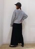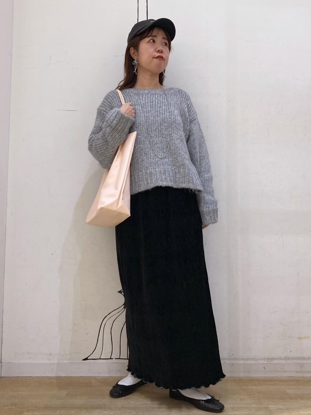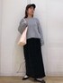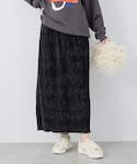 グレーのニットは、ふわふわの素材でラメがさりげなく入っているので、モノトーンでまとめても華やかな印象に。 ベロアプリーツスカートは、ウエストゴムで楽に着れます。裾のメローの配色も可愛いスカートです。