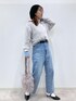 デニムシャツにデニムパンツの組み合わせに、ふわふわなニットをレイヤード。 全体的に淡いカラーでまとめて、今の時期から取り入れることができる春先取りコーデにしました。 ※帽子とメガネは私物です。