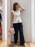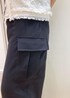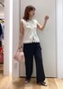 サマーツイードのジレに、カーゴパンツをモノトーンで合わせました。ジレは、38Tサイズだと腰が隠れるくらいの長さなので、下2つボタンを外して、抜け感がでるように着用しました。