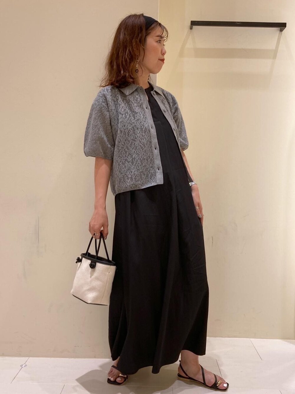 楽にコーディネートが完成するワンピースに、レースカーディガンを着て大人カジュアルな印象にしました。 ワンピースは1枚でも着やすい着丈とブラックは裏地無しですが透けを気にせず着れました。
