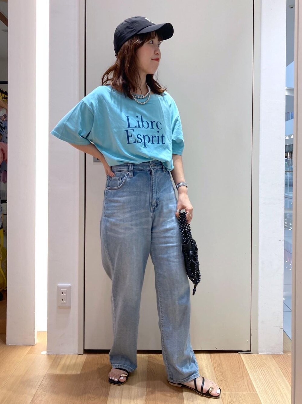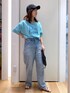 Tシャツとデニムでシンプルな合わせですが、Tシャツをオフショルデザインにすることで、女性らしさを意識をプラス。肩の肌見せの分量も露出しすぎないデザインなので着やすくておすすめです。 ※紐付けてないアイテムは私物です。