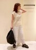 暑い夏の時期に、肌離れして涼しく楽に着れるコーディネートです。 プリーツパンツはウエストが一周ゴムで楽に着れます。 プリーツ部分は広がりにくくスッキリ見えます。