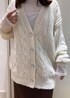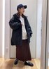 ケーブル編みニットカーディガンにトタンテレコのスカートの新色を合わせました。 白とブラウンの組み合わせが安定に可愛いです。 小物やアウターは黒やネイビーでスッキリ見えるカラーをチョイス。 おでかけにぴったりなコーディネートです。