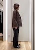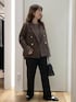 大人気のカナパジャケットのブラウンに、ニットも同色のブラウンでまとめました。 パンツやシューズは黒で統一して、オフィスカジュアルでも着れるコーディネートにしました。