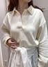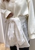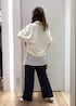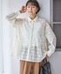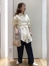スキッパーデザインのスウェットに、イージーワイドパンツを合わせて動きやすいコーディネートに、ポイントでレースブラウスを腰に巻いて、ラフすぎず女性らしさをプラスしました。
