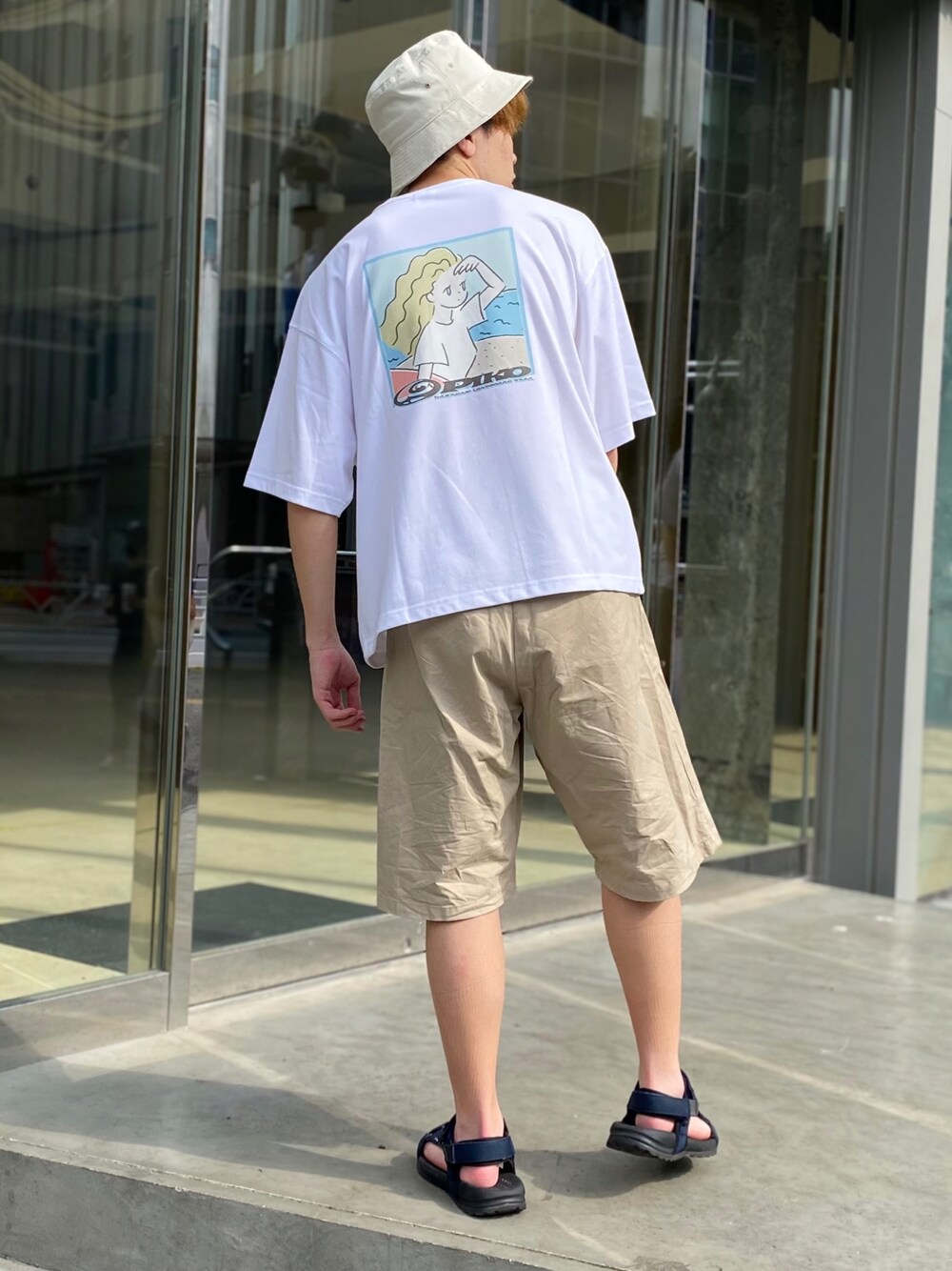 夏らしいガーリーな色合い✨ バケハで夏の日差しを防ぐ!! バックプリントはPIKOさんのTシャツでめちゃくちゃ可愛いし、単調にならない!! ハーフパンツはベージュで落ち着きのある色を採用!! サンダルでさらに夏らしくしてみました!! ーーーーーーーーーーーーーーーーーーーーーーーーーーーー Instagram→jun_wear45 Instagramでは夏コーデをシーン別に詳しく紹介してます!! WEAR、Instagramのフォローよろしくお願いします!! では👋
