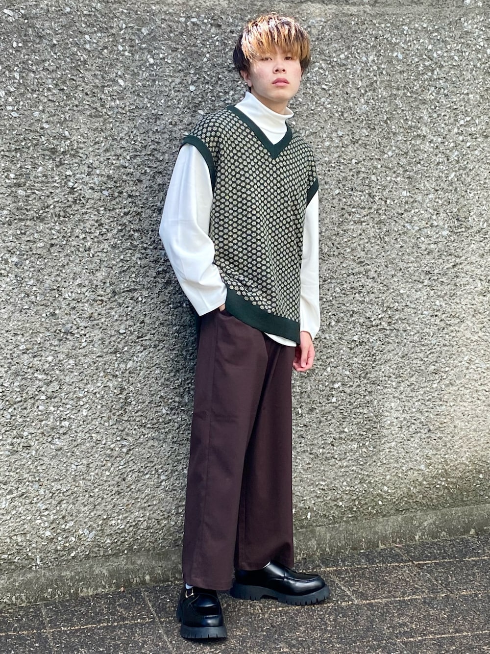 柄ベスト🤟 古着風な柄ベストとブラウンパンツを合わせたお洒落な秋コーデ👍 アースカラーで統一した古着っぽいコーデの主役は柄ベスト!! 柄ベストはZOZOで完売してしまい、店舗にあるかもしれないくらい大人気なイレギュラーアイテム!! パンツは秋らしい深めなブラウンで、着回しがしやすい!! ーーーーーーーーーーーーーーーーーーーーーーーーーーーー Instagram→jun_wear45 Instagramでは秋コーデをシーン別に紹介し始めました!! WEAR、Instagramのフォローよろしくお願いします🙇♂️ では👋