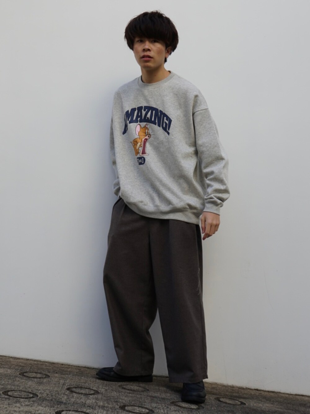 junのスウェット「【PUBLUX/パブリュクス】 別注ジェリープリントクルーネックスウェット/ユニセックス/トムとジェリー」を使ったコーディネート
