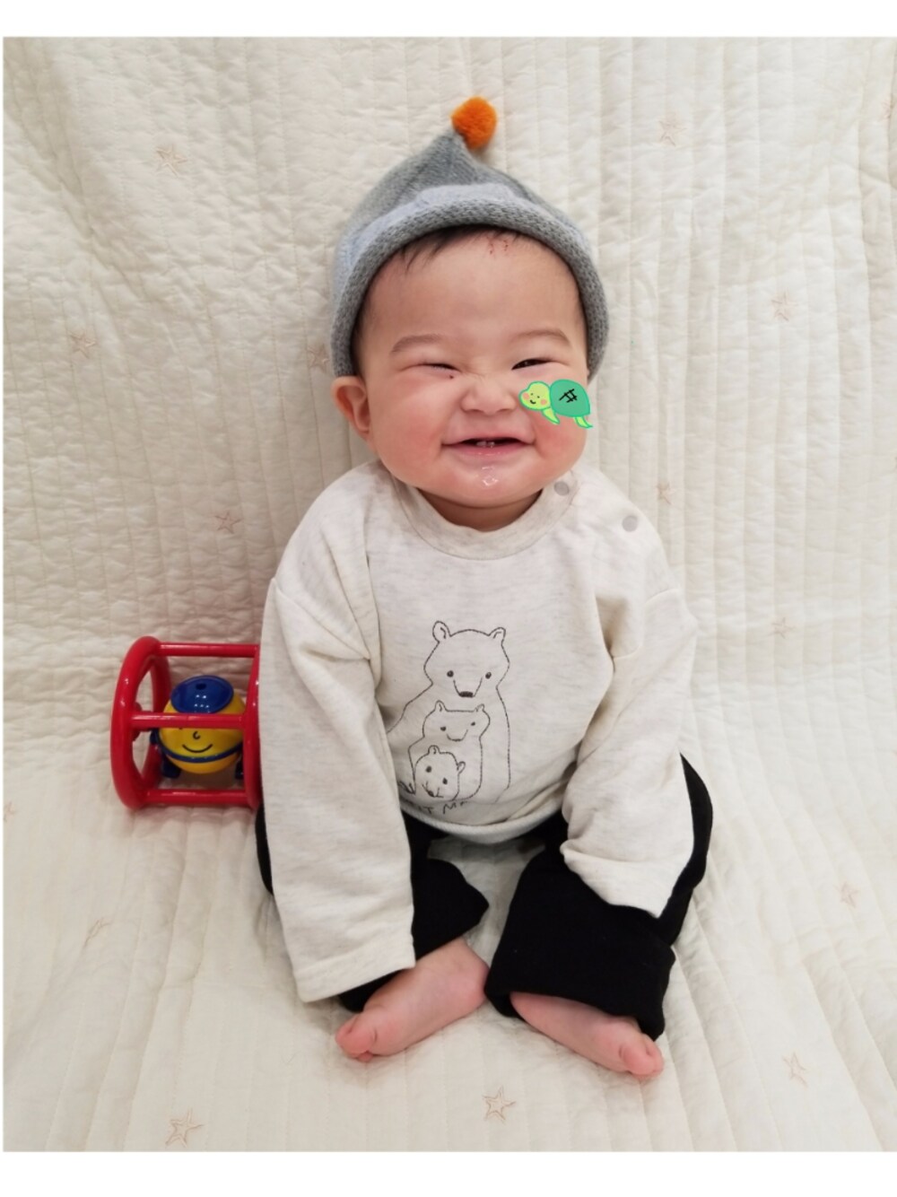 久しぶりに投稿! 座れるようになりました! 義母にもらった服たち🥺💕 とんがり帽子めっちゃかわいい