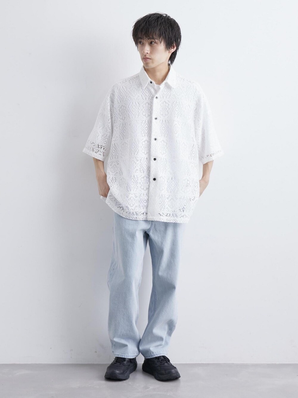 Junyaのシャツ/ブラウス「レギュラーカラーS/Sレースビッグシャツ」を使ったコーディネート