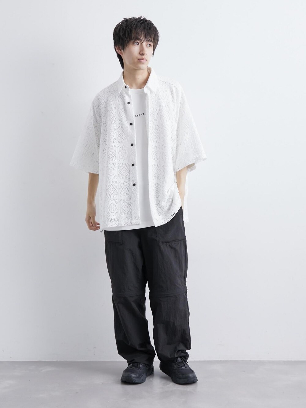 Junyaのシャツ/ブラウス「レギュラーカラーS/Sレースビッグシャツ」を使ったコーディネート