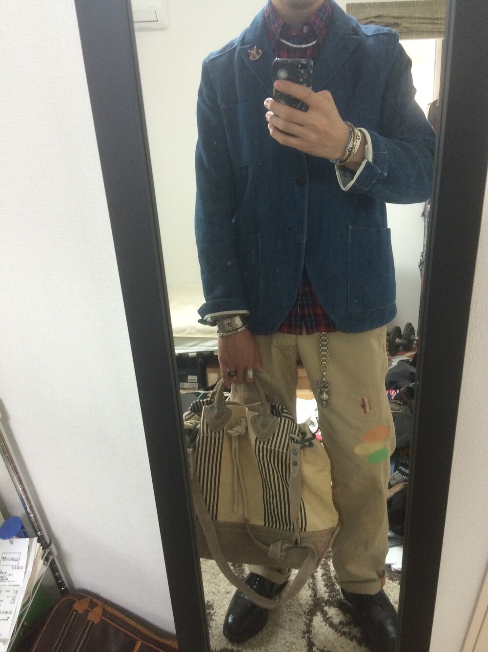 この土臭い感じが好きです。 足元の70~80年代のデッドストックのレッドウイングを古着屋で購入。 なんでも6周年記念で全品半額!びっくりするくらいの値段で買えました(・ω・)ノ 天気早くよくなってほしいです。