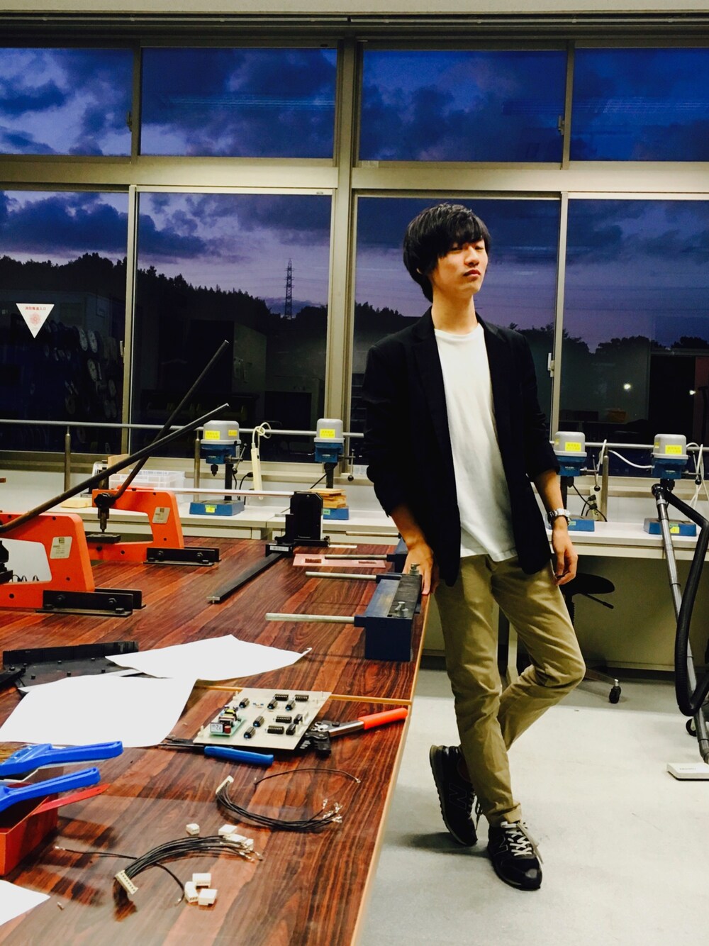 見下しポーズ😒 しょうくんのきれいめカジュアルコーデ👀 涼しくなってきたのでレイヤードできちゃいますね😎 学校忙しい〜😭😭