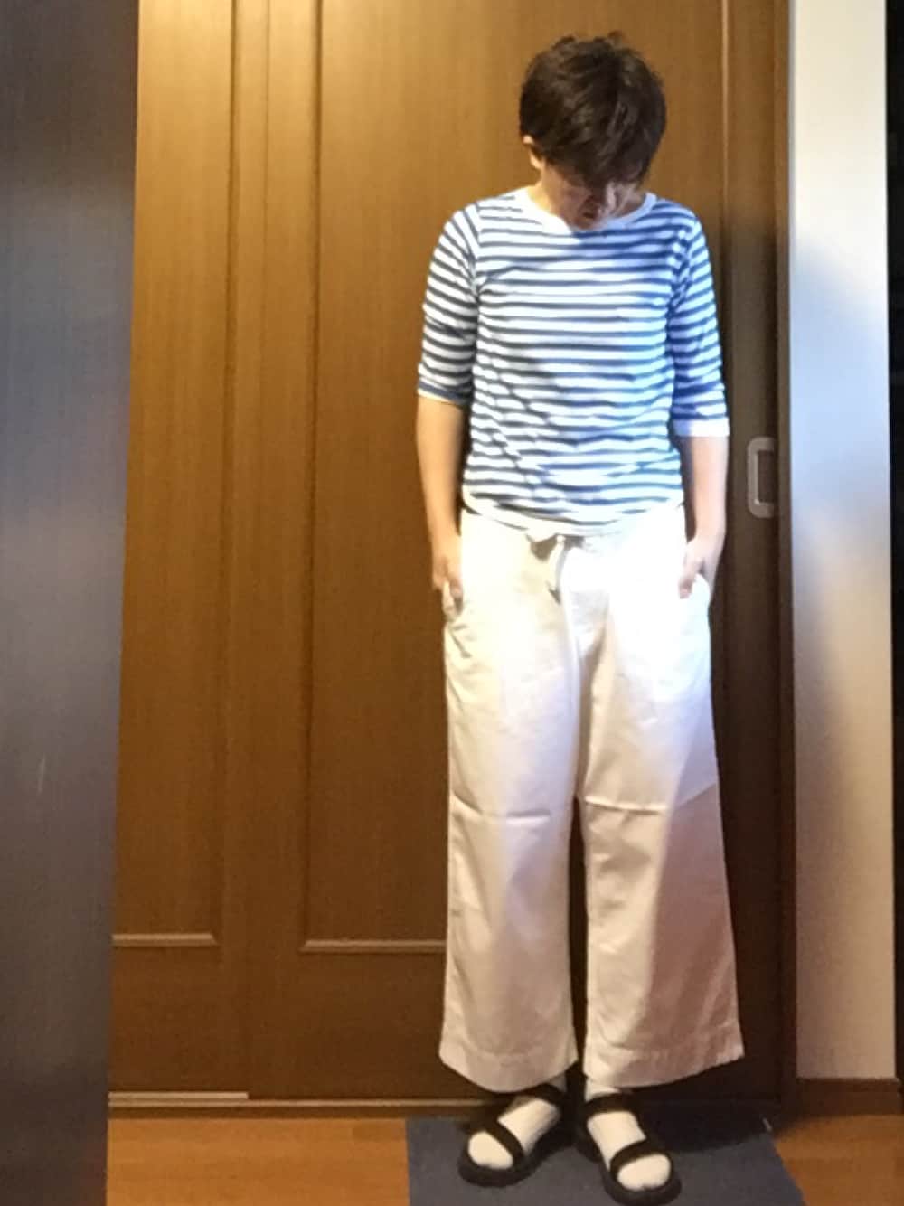 おっはよー\(*ˊᗜˋ*)/♡ヤホー いつも私のゆるゆるコーデを見てくれて、 コメント、セーブ、いいね💛ありがとうございます(✿´ ꒳ ` )♡ GW明けましたね。 みなさんはどっか行きましたか? 私は農繁期突入で、 今年は一番動ける息子が居ないので 大変でした。 本当に普通に仕事行ってる方が楽です。 うちは、自分ちで食べる位しか作ってないけど、こんなにしんどいのに、専業農家さんは本当に大変だろうなっていつも思います。 それの反動?ではないんだけど…… またぽちっちまいました(笑) 白のワイド系のパンツ と綺麗色のボーダーTシャツ! &もう1個(^-^;💦 もう1個はまだ来てないから、またね! とりあえず、白ワイドパンツが履きたかったコーデー(๑•ω•๑)♡ ほんじゃ休み明け、お仕事頑張ります!! またね(*•̀ᴗ•́*)و ̑̑