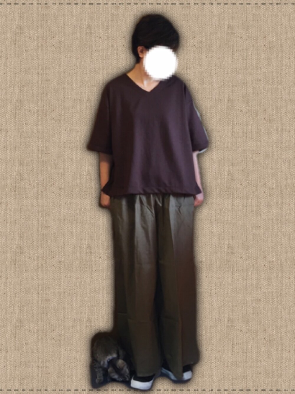 こんにちは(*^^*) いつも私のゆるゆるコーデを見てくれて、 コメント、セーブ、いいね💛 ありがとうございます(✿´ ꒳ ` )♡ 9月ですねー! 早い💦 台風来てて暑いけど、 仕事場の決まりで9月からは七分袖か長袖しか 着れないの(^◇^;) 暑いのに〜! このTシャツ袖が5分袖くらいだから、 ドキドキしながら、着て行ったよ😆 とりあえずおこられなかった😁😁 またにゃんこ乱入₍˄·͈༝·͈˄*₎◞ ̑̑ 台風気をつけてね‼️ ほんじゃまたねー(*^^*)