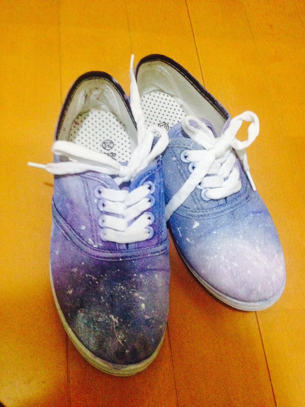 初DIY ギャラクシー柄スニーカーのつもり! 右はDIYする前のものでサンキューマートで買いました アクリル絵の具使用