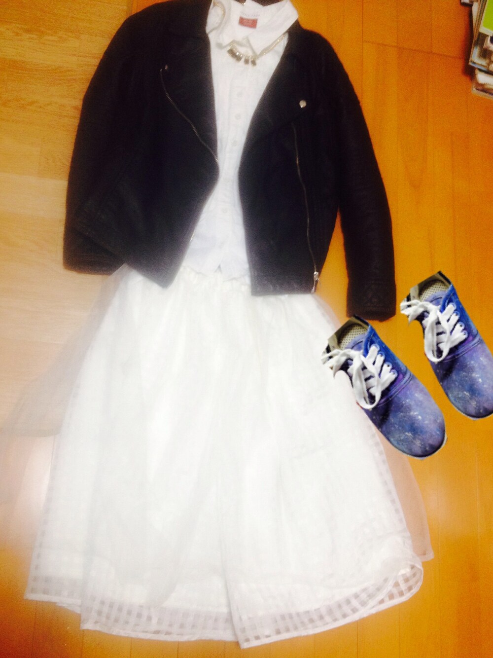 真っ白コーデ2回目〜 足元はギャラクシー柄(のつもりの)スニーカー