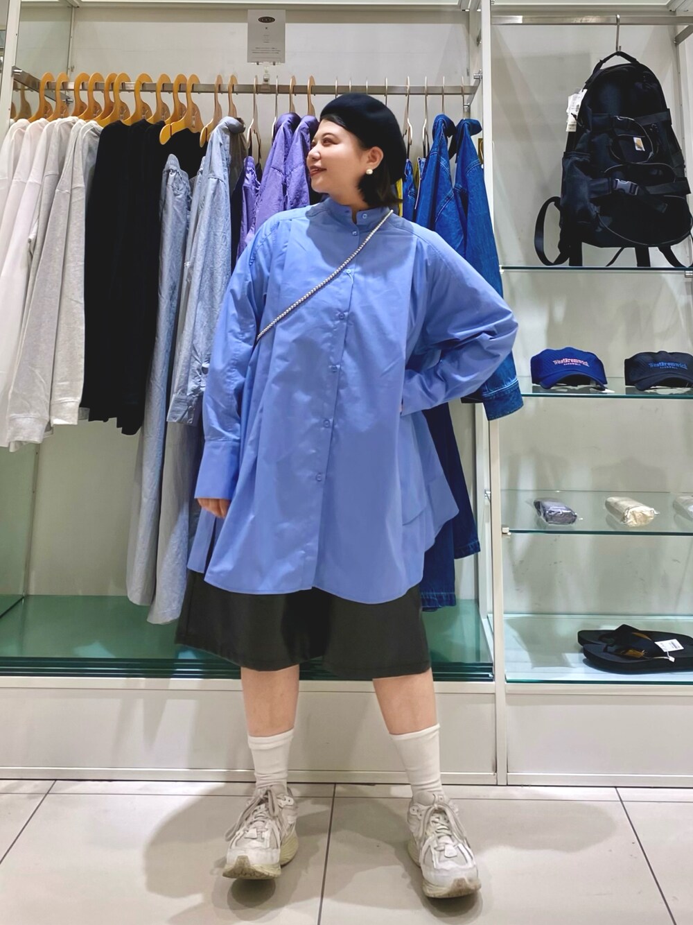 juri.(SENSE OF PLACE グランフロント大阪)のワンピース「ヘムタックミニシャツワンピース」を使ったコーディネート