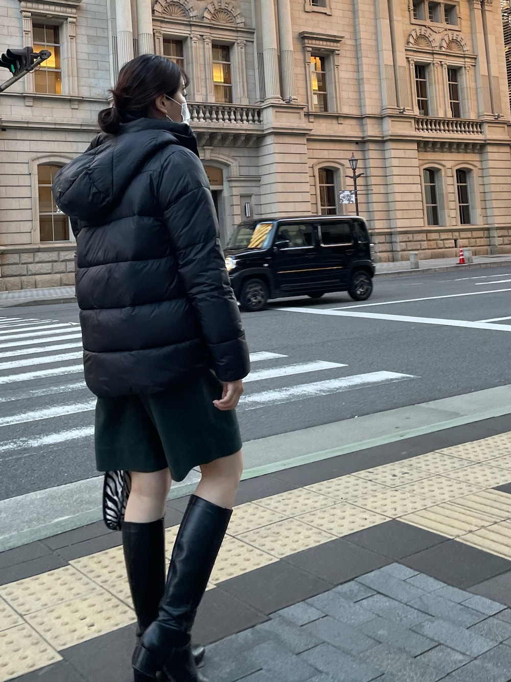 1回ダウン着たら手放せなくなる❄️ ボリューム少なめのダウン初めて買ったけど軽いし楽ちん❣️ダウン×ショート丈×ロングブーツ、シンプルで定番な組み合わせやけどかわいい~
