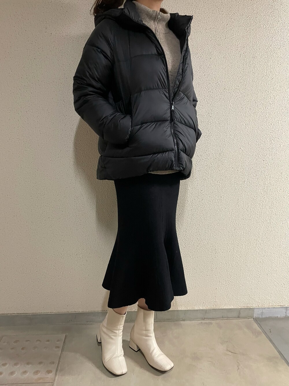 UNIQLOのハーフジップは着回ししやすいからお気に入り♡他にも着回しコーデ載せてます🥰 今回はスカート合わせで女性らしく◎ ダウンのロゴがさりげなくあるのが好き✍🏻