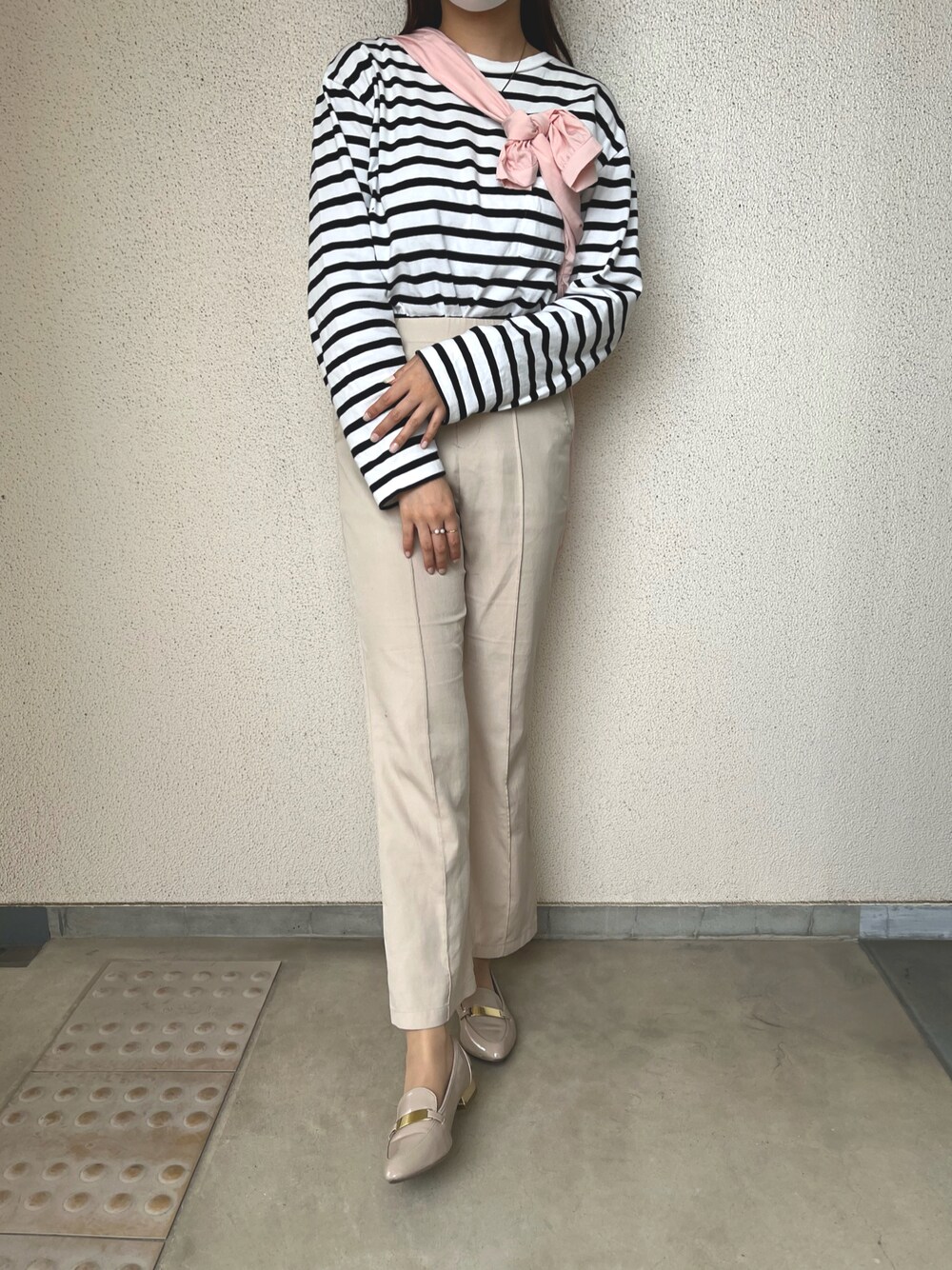 閲覧ありがとうございます☺︎ ピンクのブラウスやカーディガンを肩掛けするだけで今年っぽく春らしくなりますね◎ どのアイテムも着回し力抜群です🥰 スニーカーじゃなくてパンプスできれいめにするのが今の気分♡