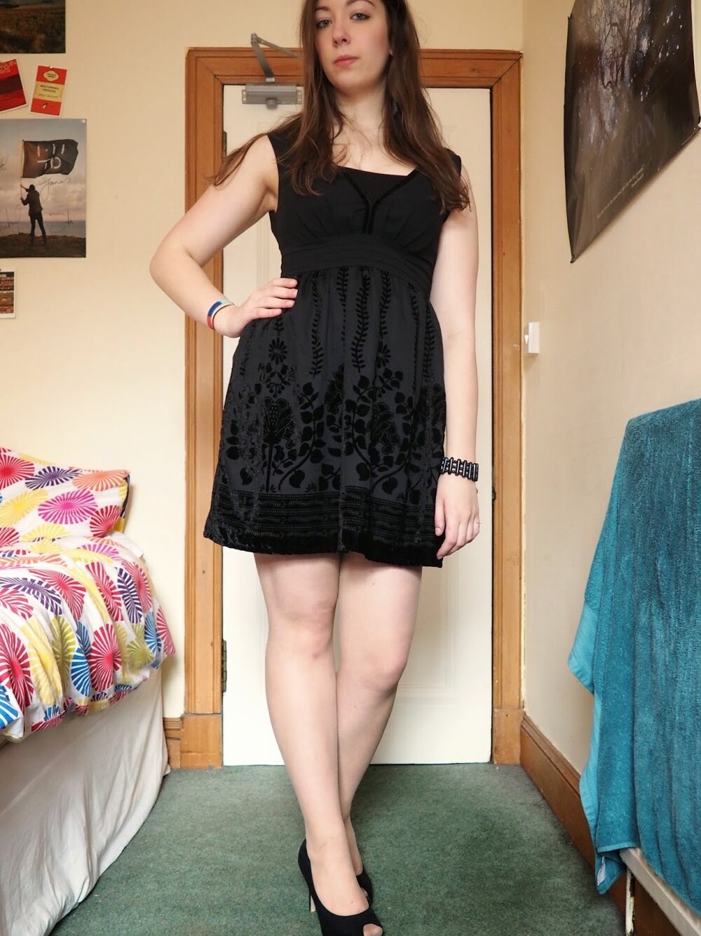 The velvet patterns on this dress make it one of the more formal ones I own. Full outfit post available on my blog - justmuddlingthroughlife.com