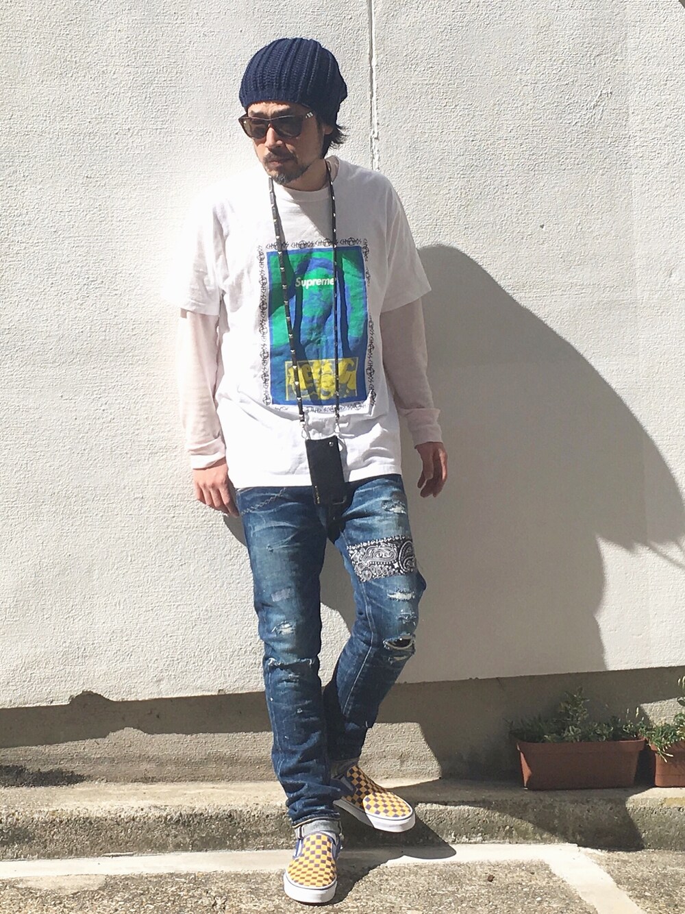 I先生、こんな感じになりました。 少し大きめTには、 スキニーとスニーカーが鉄板ですね。 プリントに、スニーカーの色もよせて… Tシャツstyleには、欠かせないバンドリヤーも、アクセサリーの要素も担ってくれてます。 ワッチキャップも、 締め付けが、キツくないので、 夏も快適ですよ。
