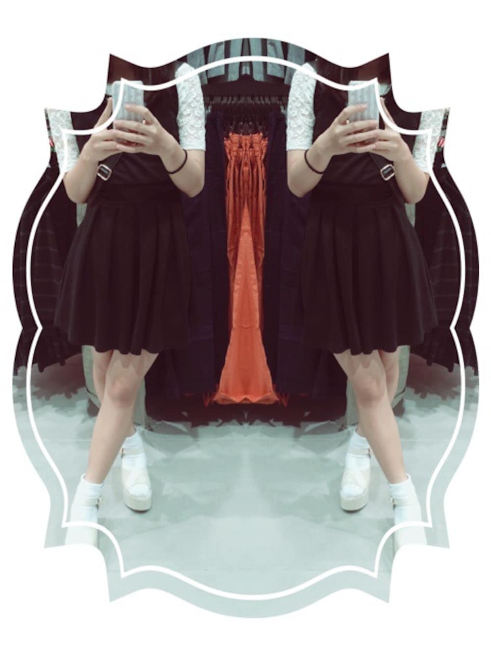 白のレースに黒のワンピースに白の靴下厚底サンダル 女子!