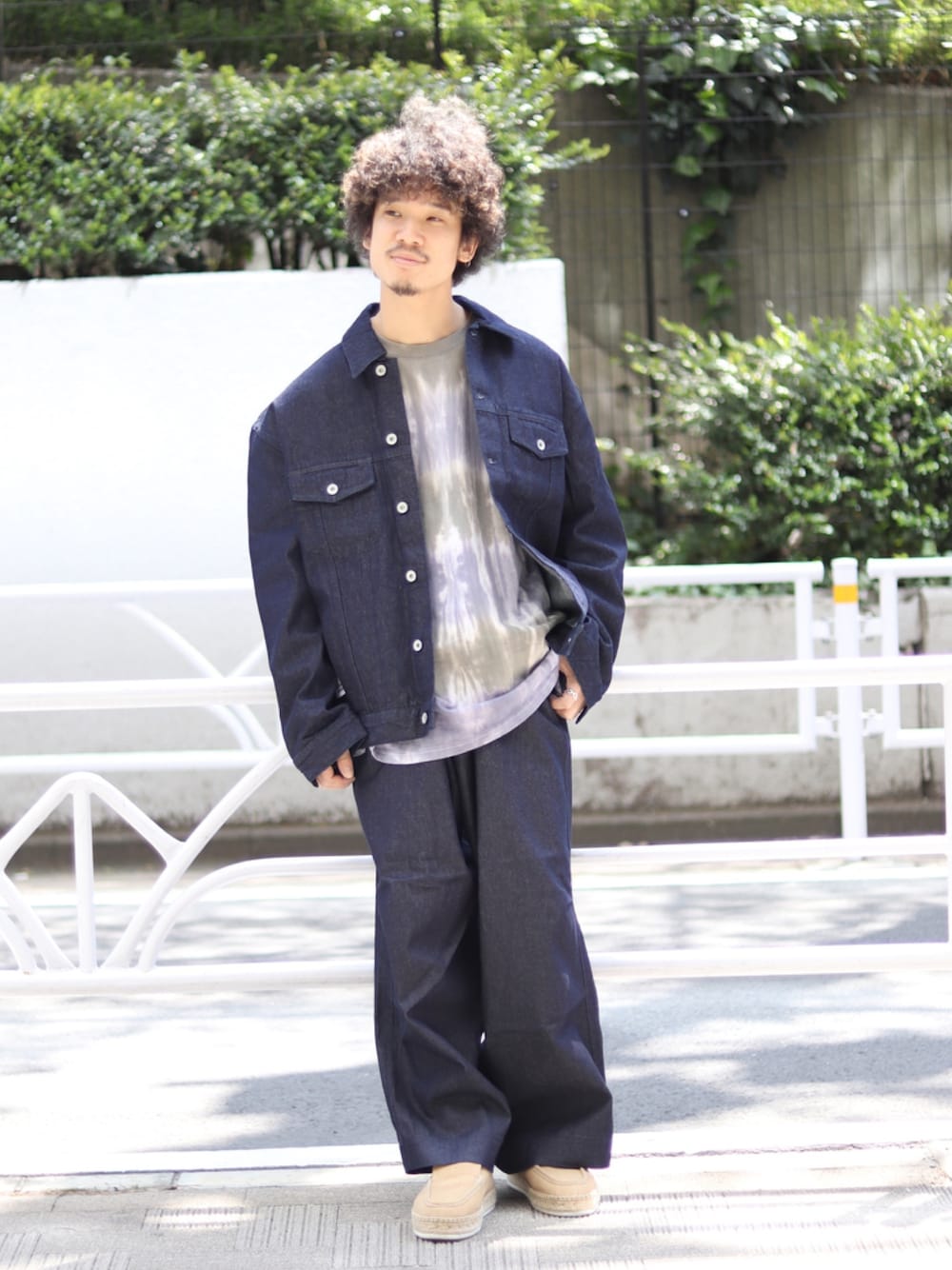 カジュアルの定番3rd型のGジャンですが、BOXシルエット+ドロップショルダーが絶妙なトレンド感を演出しておりくれます。 共地のワイドパンツと合わせれば、カジュアルでおしゃれ感のあるセットアップスタイルが完成します!