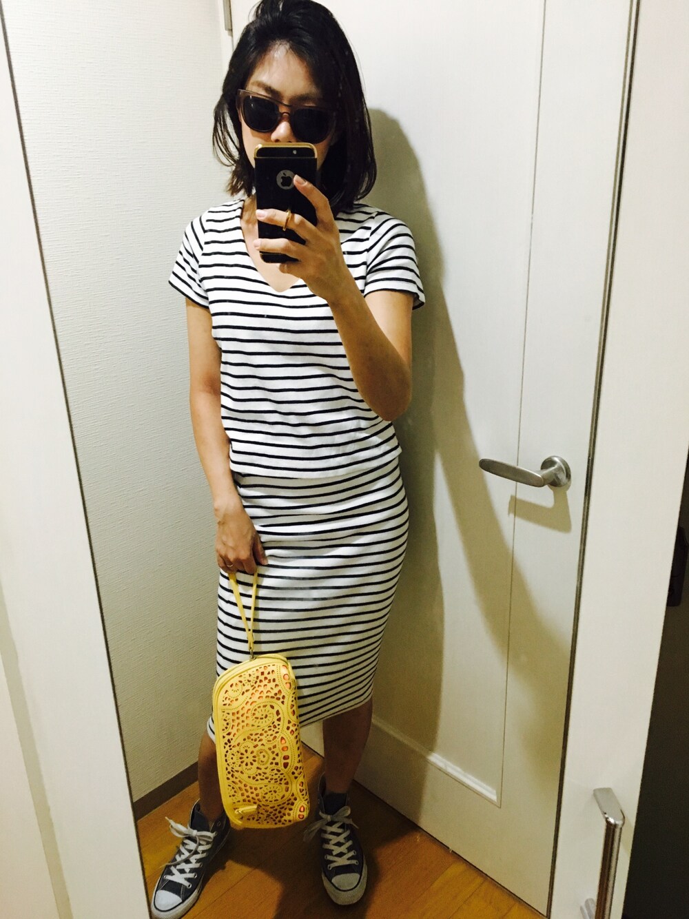ちょっと小出かけなのでカバンちっちゃめ。このセットアップは無名店で190円だったと母が買ってきてくれた(笑) 着てますよー♪