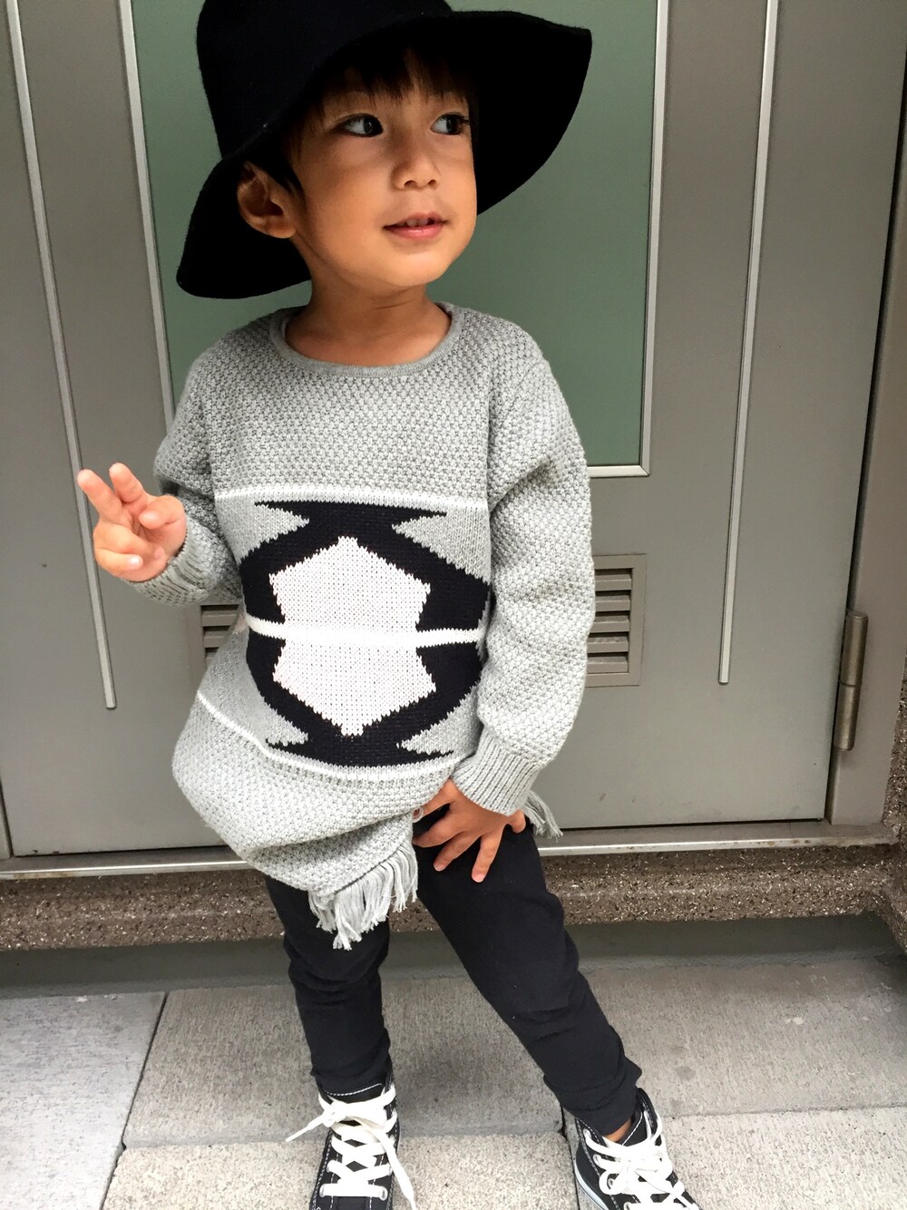 めっちゃかわいくて ひとめぼれした ネイティブ柄ニット👦🏽❤️️ ただ丈が長すぎて Jyoには女装感しかでやーん💦 フリマします😫💭 HAT.TOPS⇒韓国子供服
