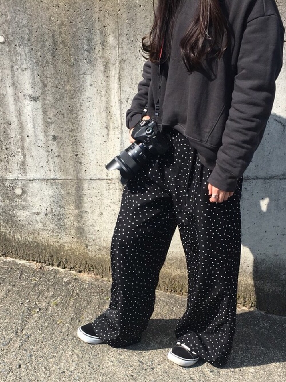 insta @__mmmii_ 実は発売直後にゲットしていた GUのドットパンツ。 そしてZARAのスウェット。 使える優秀さん👏🏻✨ 坂道で撮ったため ズボンがズルズル😵 いつもはちゃんと オールドスクール見えてますよ♡ と一応報告しておきます💓(笑)