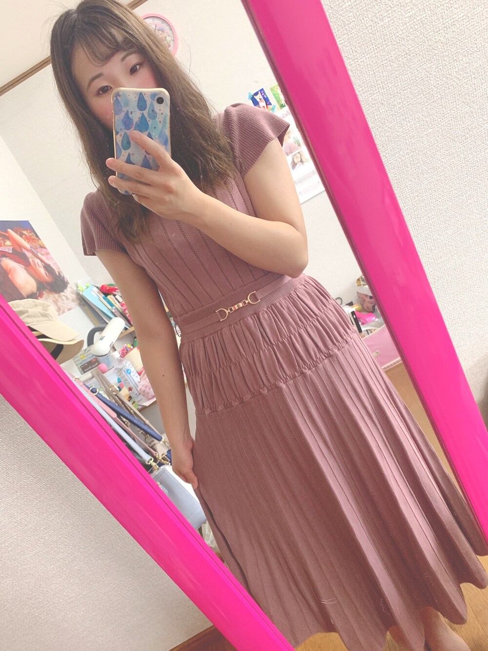 あずさんのワンピース「シャーリングニットワンピース」を使ったコーディネート