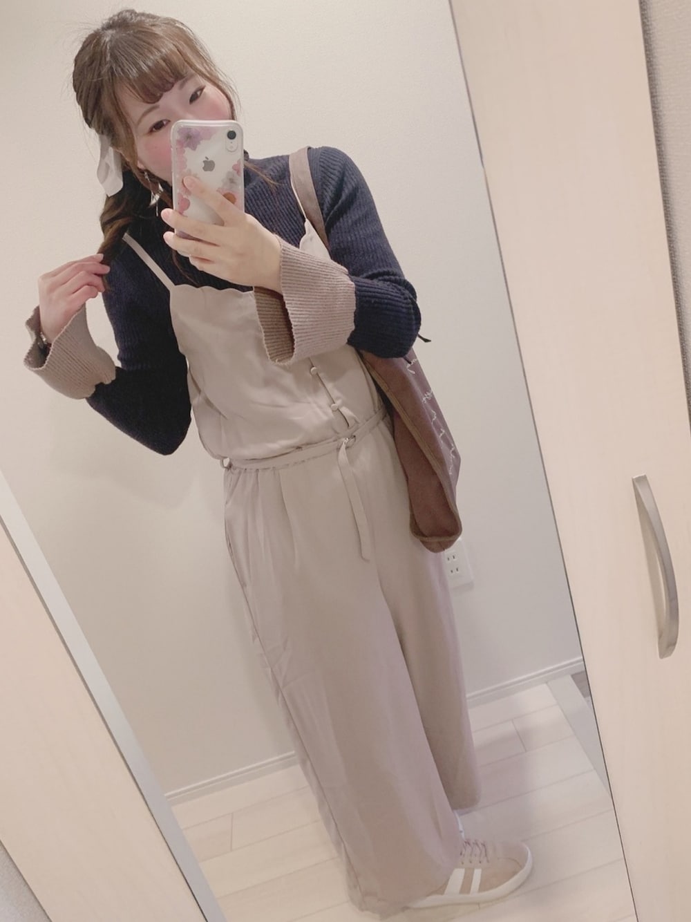 今日のコーデ❤︎ ⇩ マジェのオールインワンと Cherie Monaのニットの組み合わせ💗🤎 マジェのオールインワンはこれからの季節に着られそう☺️♩ トップスは今日は雨で肌寒いから、 ニットで少し暖かくしてみました🧶 髪の毛は久しぶりにポニーテール🐴 今日はお出かけではありません🙅🏻♀️ (仕事が終わらないので仕事に行きます←)