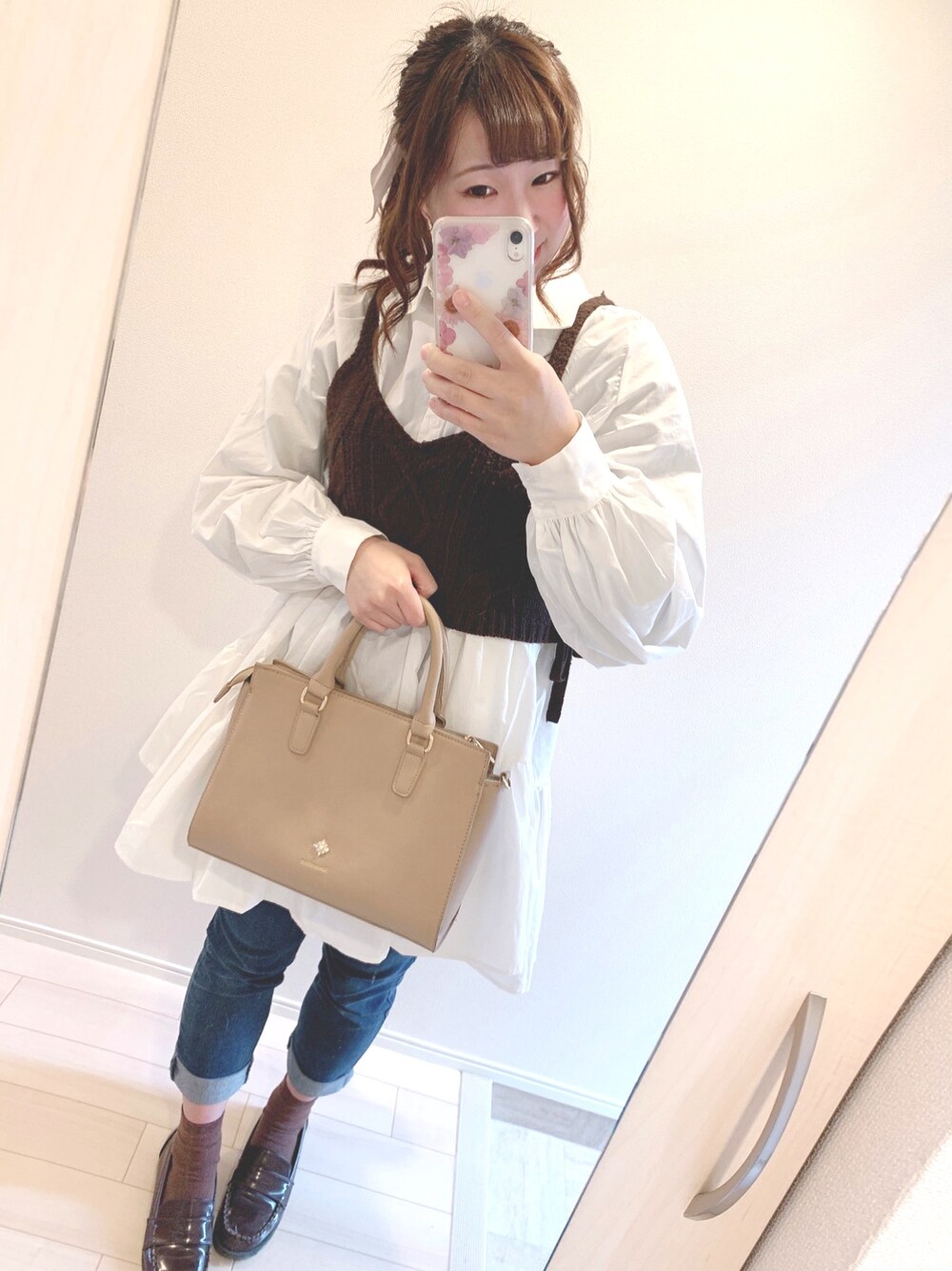 今日のコーデ❤︎ ⇩ ティアードワンピースコーデにしてみました👗🤍 ティアードワンピースが欲しくて そのまま着てみたいと思ってたけど 足を出すのにやっぱり抵抗があって断念🥲🙅🏻♀️ でも、下にデニム履くスタイルもいいなぁって思って デニムと組み合わせてみました👖✖️👗 ビスチェも重ね着すると可愛いし、キュッと締まる感じがして お気に入りのコーデが組めたなぁと思います☺️🤍💙🤎 全体的にブラウンで統一して、 髪の毛は安定の巻き巻きポニーテール🐴💓 今日はどこに行こうか決まっていません💭