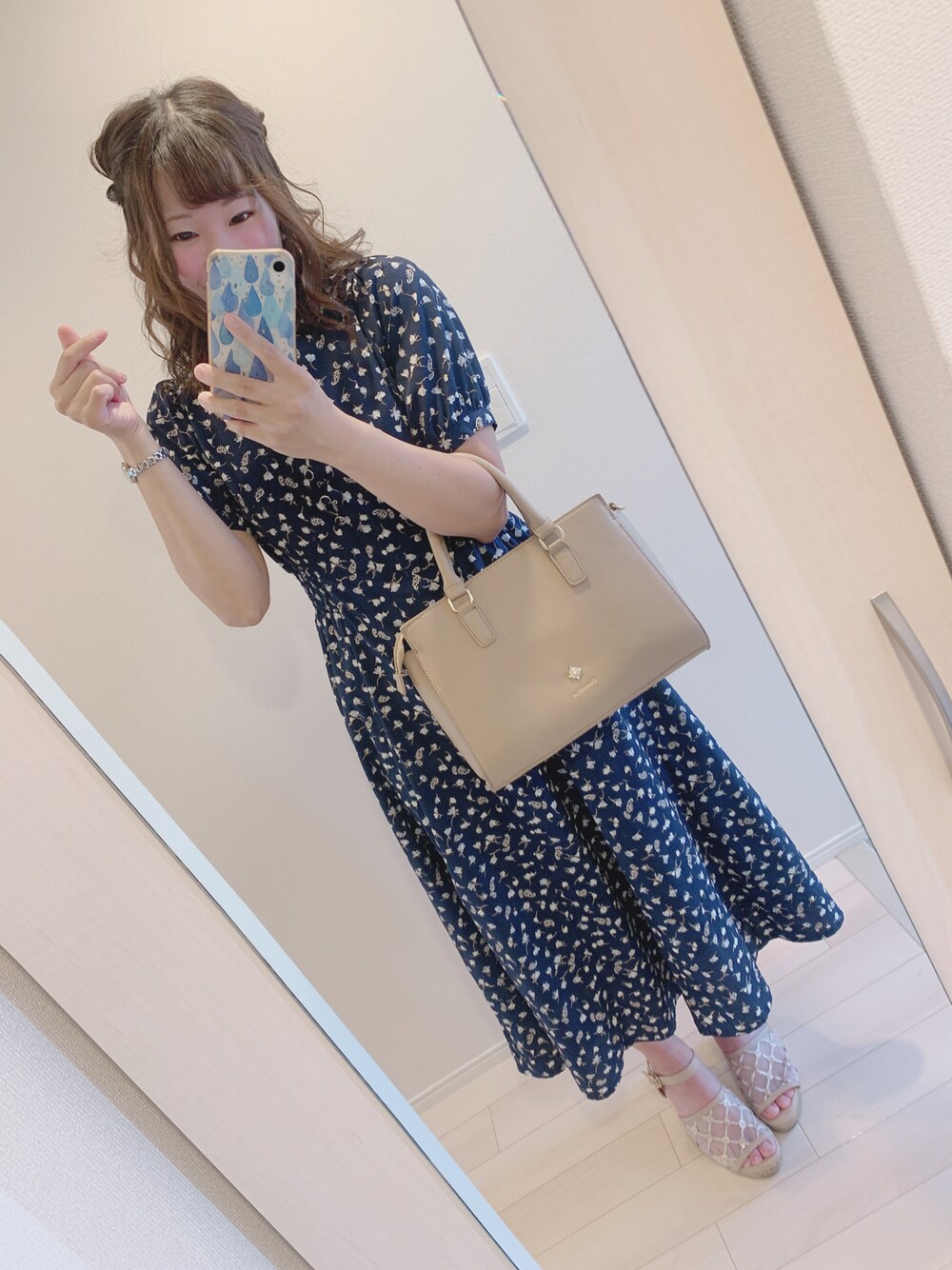 今日のコーデ❤︎ ⇩ マジェの花柄ワンピース💐👗 今日はこのワンピースが着たい気分でした♩ 足元もマジェのサンダル👡 このサンダルは本当にお気に入りアイテム❣️ 足元がベージュだから、カバンもベージュで 合わせてみました👜 紺色✖️ベージュコーデにまとまりました💞 今日は仲良しな後輩ちゃんとランチ🍽 楽しみだなぁ☺️✨