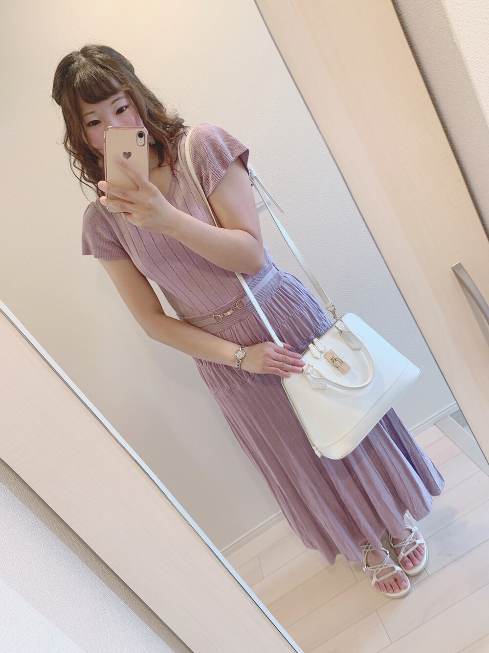 今日のコーデ❤︎ ⇩ ミッシュマッシュのワンピース👗💜 最近これワンピース着てないなぁと思って 目に付いたから、今日はこのワンピースにしました💞 パステルカラーのパープルが本当にお気に入り☺️♩ もうすぐ秋になるし、このワンピースも 今年はそろそろ着納めかなぁ😌💭 (前髪巻きすぎて、こんなに短くなっちゃった笑)
