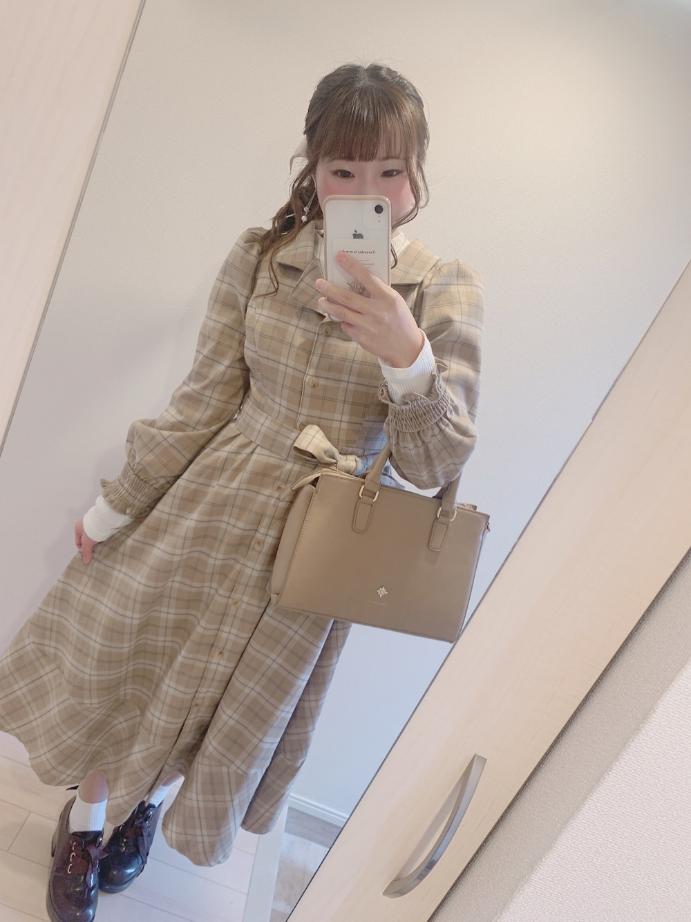 今日のコーデ❤︎ ⇩ アンミールのチェックワンピース👗🐴🎀🤎 年末にアンミールのお店に行って買ったものの中の1着🥰 チェック柄もカラーも形も最高に可愛いの💓 これから大切に着たいと思います♩ 今日は仲良しの後輩ちゃんとランチ🐕🍽