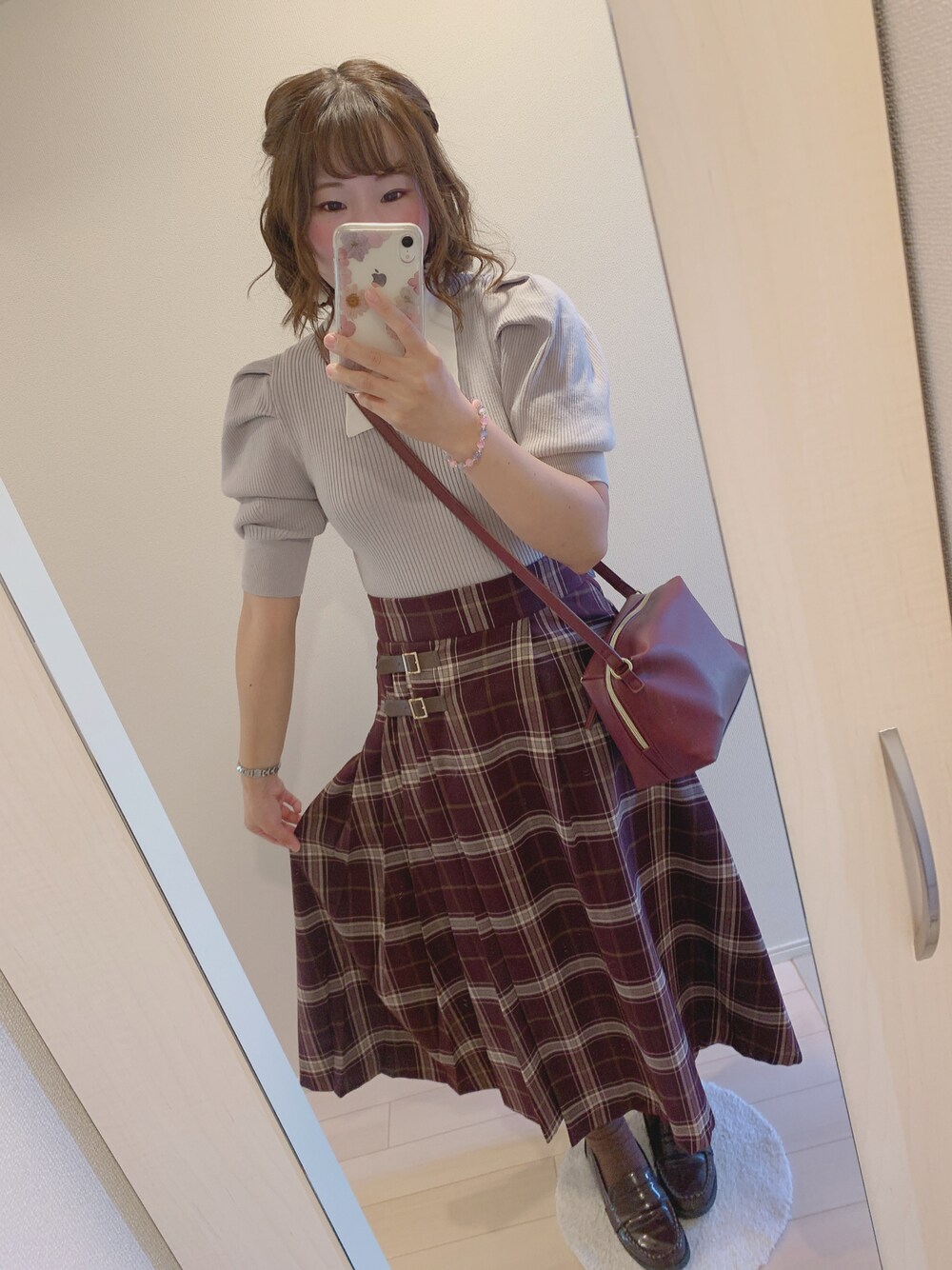 今日のコーデ❤︎ ⇩ 秋のパステルミックスコーデ🤎❤️💜 お気に入りのsnidelの淡色トップスと 赤のチェックスカートでコーデを組んでみました♩ 可愛いけど、秋らしさも感じられる コーデになって良かった☺️🍁 ジャケットを羽織ってもいい感じ🧥 今日もいい天気でいい気持ち〜🍃☀️
