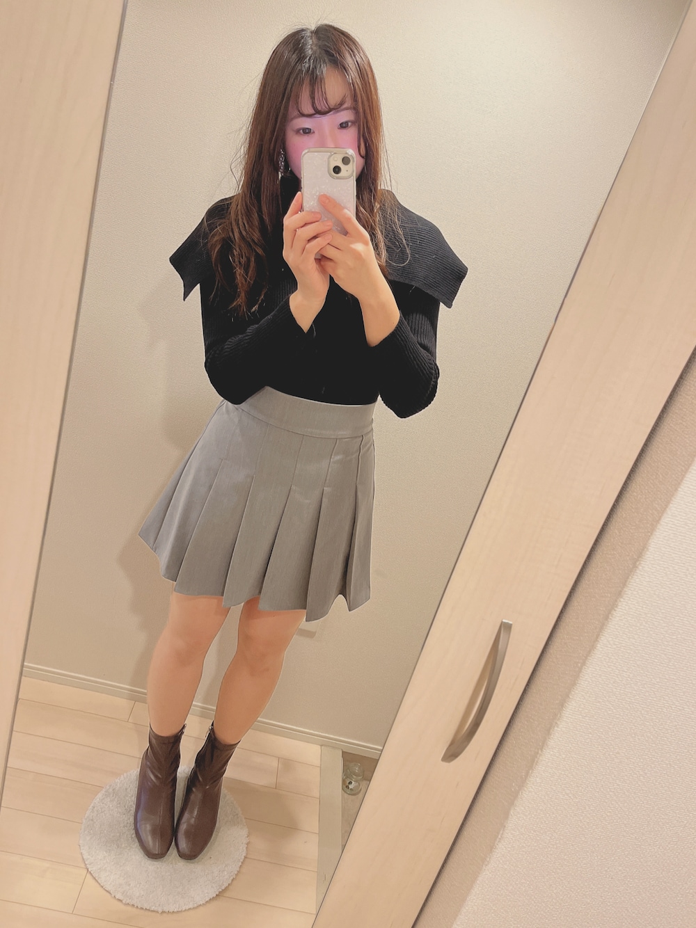今日のコーデ🖤 マジェのスカショーパンに グレイルの黒ニットを合わせてみた🐈⬛🩶 このスカショーパン細見えするし 着回し抜群だから重宝してます💞 秋冬のコーデはいつもは着ない暗めの色を 着られるのもまた嬉しい☺️!