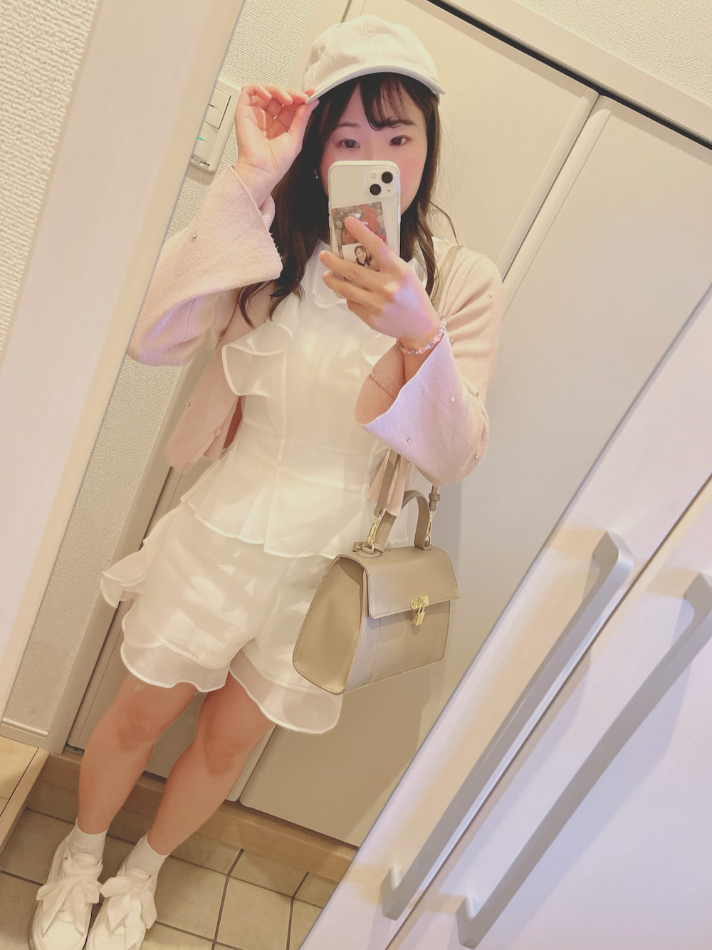 久しぶりのWEAR🕊️ 今日はとっても暖かかったので、 SNIDELのWEB限定のオーガンジー素材の セットアップでした🤍 ピンクのカーディガンはマジェ🫰🏻 愛犬とお花見できて楽しかった🐕🌸💕